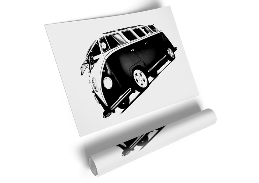 VW Camper Van Black n White Poster printed on high quality canvas paper, ready to display.