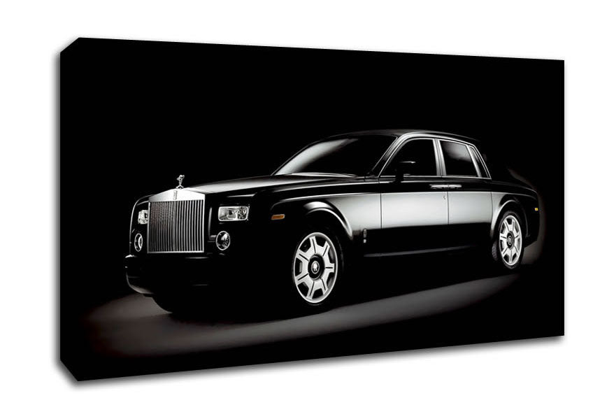 Rolls Royce Black Wide Canvas Print handmade in the UK. Stretched over a 2 inch thick wooden box frame, ready to hang on your wall.