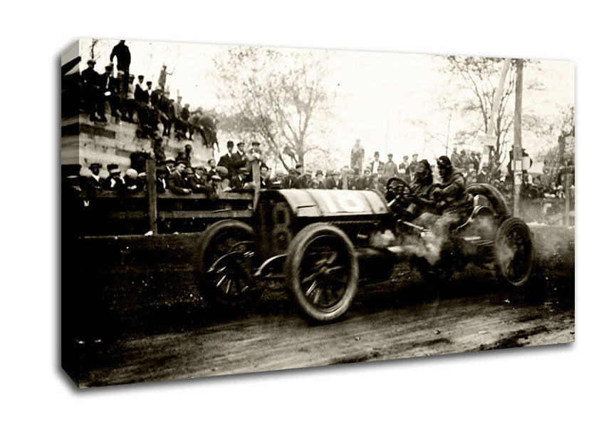 The First Formula One Race Wide Canvas Print handmade in the UK. Stretched over a 2 inch thick wooden box frame, ready to hang on your wall.