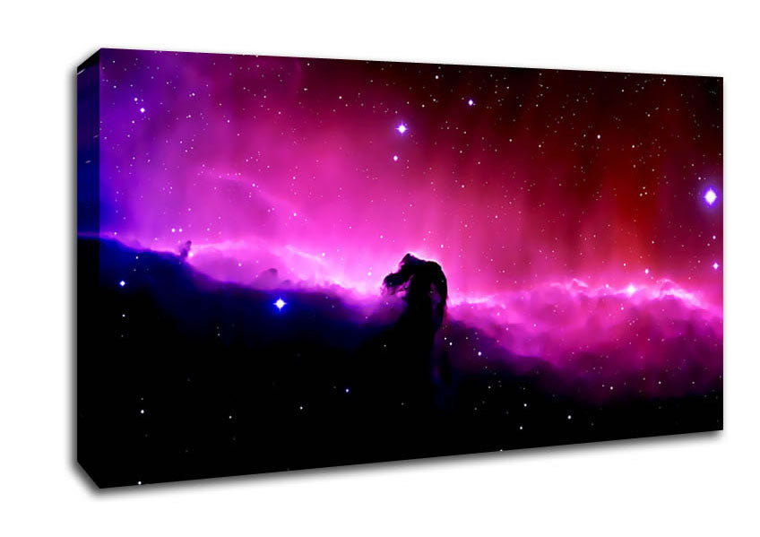 The Stunning Horsehead Nebula Wide Canvas Print handmade in the UK. Stretched over a 2 inch thick wooden box frame, ready to hang on your wall.