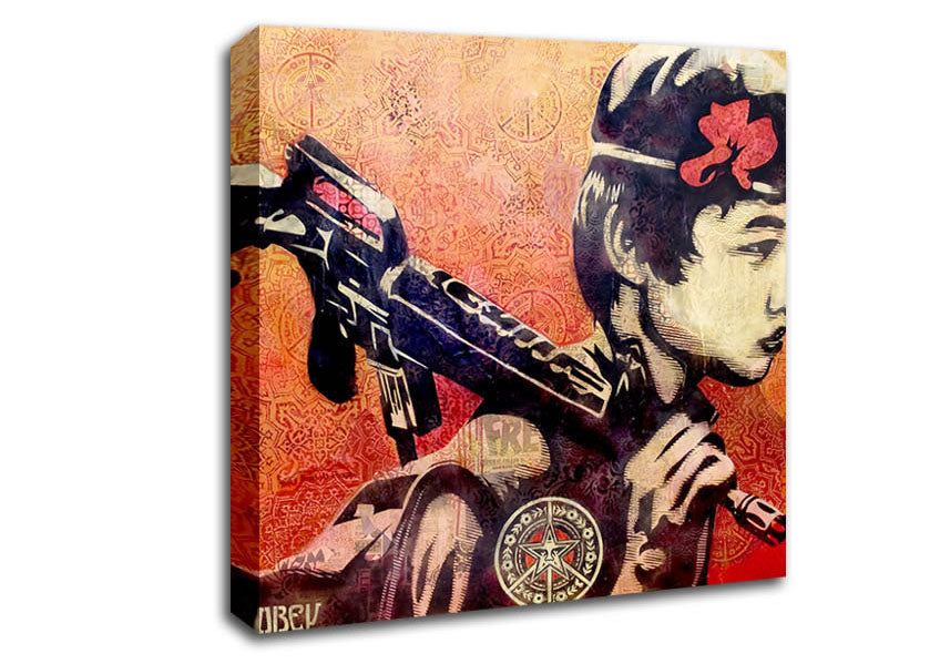 Child Soldier Square Canvas Print handmade in the UK. Stretched over a 2 inch thick wooden box frame, ready to hang on your wall.