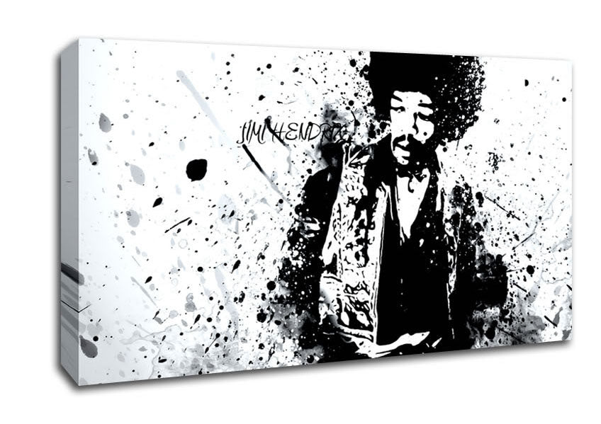 Jimi Hendrix Splash Wide Canvas Print handmade in the UK. Stretched over a 2 inch thick wooden box frame, ready to hang on your wall.