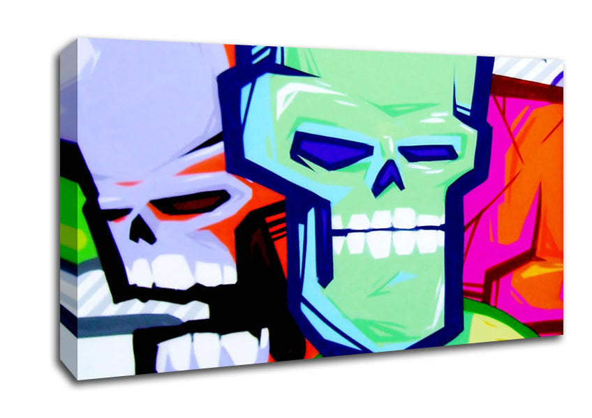 Skull Heads Wide Canvas Print handmade in the UK. Stretched over a 2 inch thick wooden box frame, ready to hang on your wall.