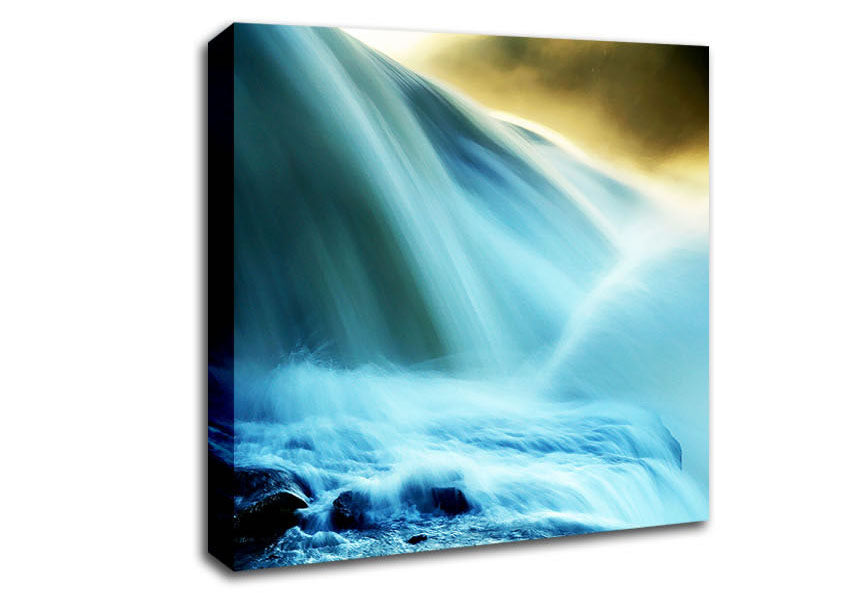 Heavens Waterfalls Square Canvas Print handmade in the UK. Stretched over a 2 inch thick wooden box frame, ready to hang on your wall.
