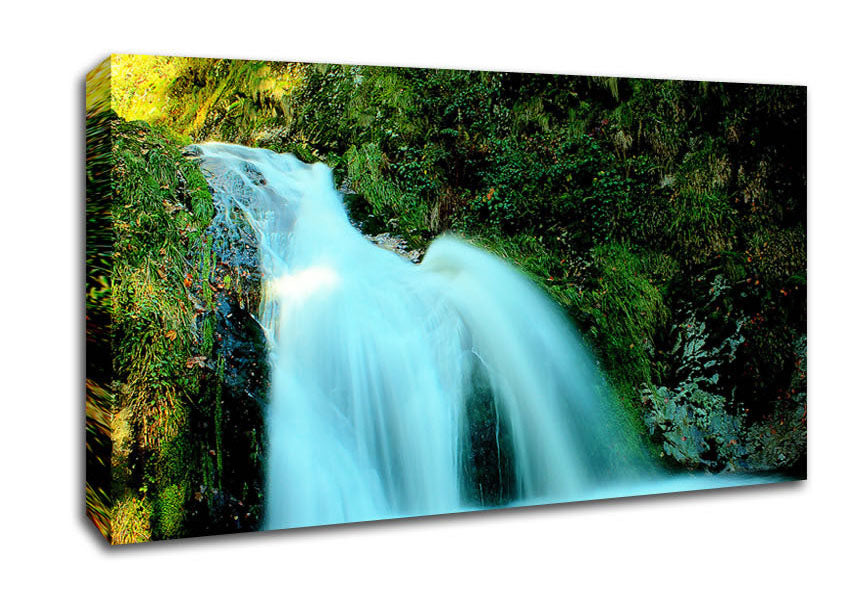 Natural Waterfall Wide Canvas Print handmade in the UK. Stretched over a 2 inch thick wooden box frame, ready to hang on your wall.