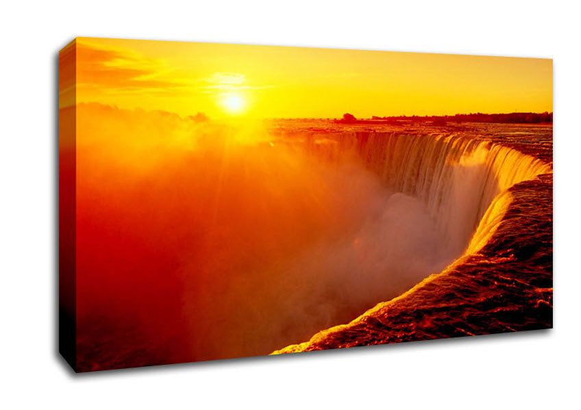 Sunsets Over Niagara Falls Wide Canvas Print handmade in the UK. Stretched over a 2 inch thick wooden box frame, ready to hang on your wall.