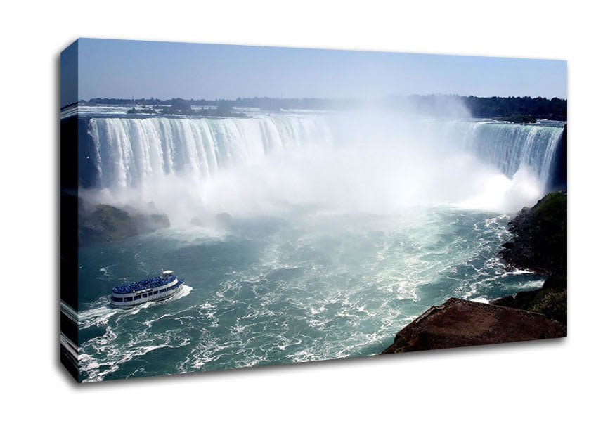 Victoria Falls Rumble Wide Canvas Print handmade in the UK. Stretched over a 2 inch thick wooden box frame, ready to hang on your wall.