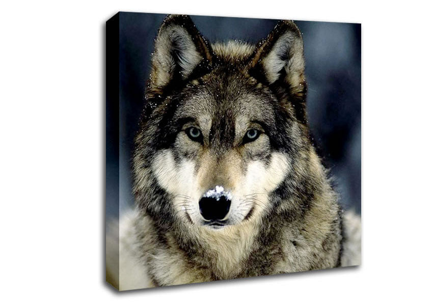 Wolf Snow Nose Square Canvas Print handmade in the UK. Stretched over a 2 inch thick wooden box frame, ready to hang on your wall.