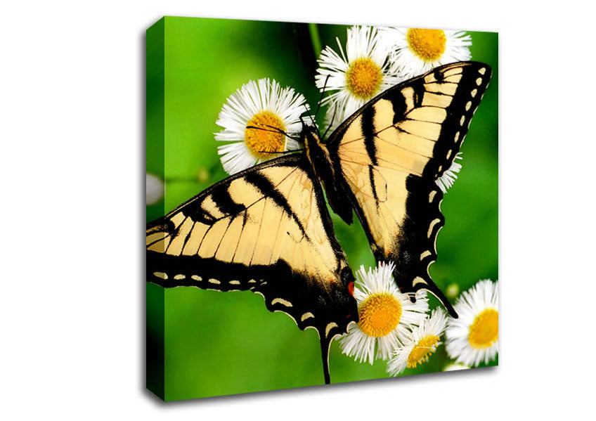 Yellow Butterfly Square Canvas Print handmade in the UK. Stretched over a 2 inch thick wooden box frame, ready to hang on your wall.