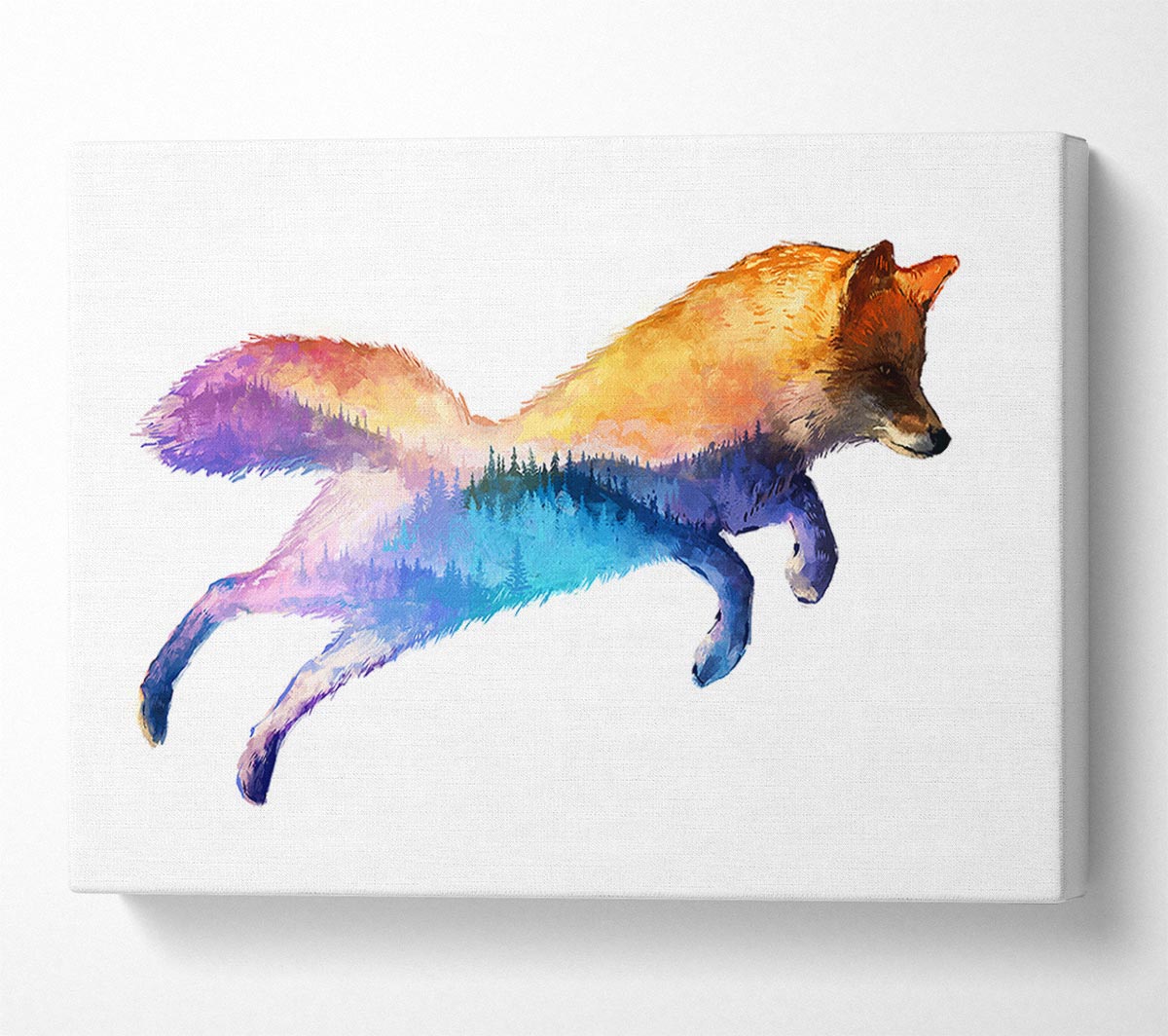 Fox Pounce Canvas Print handmade in the UK. Stretched over a 2 inch thick wooden box frame, ready to hang on your wall.