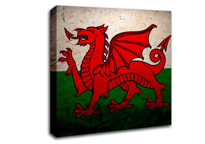 Dragon Of Wales Square Canvas Print handmade in the UK. Stretched over a 2 inch thick wooden box frame, ready to hang on your wall.
