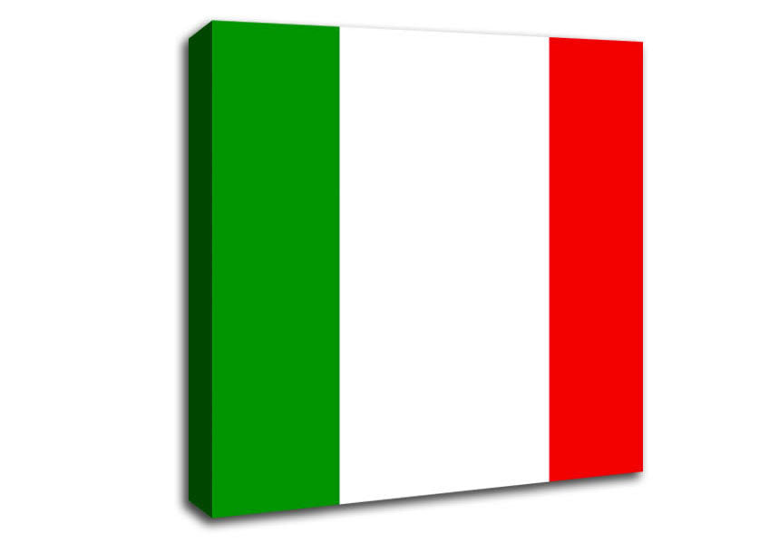 Flag Of Italy Square Canvas Print handmade in the UK. Stretched over a 2 inch thick wooden box frame, ready to hang on your wall.