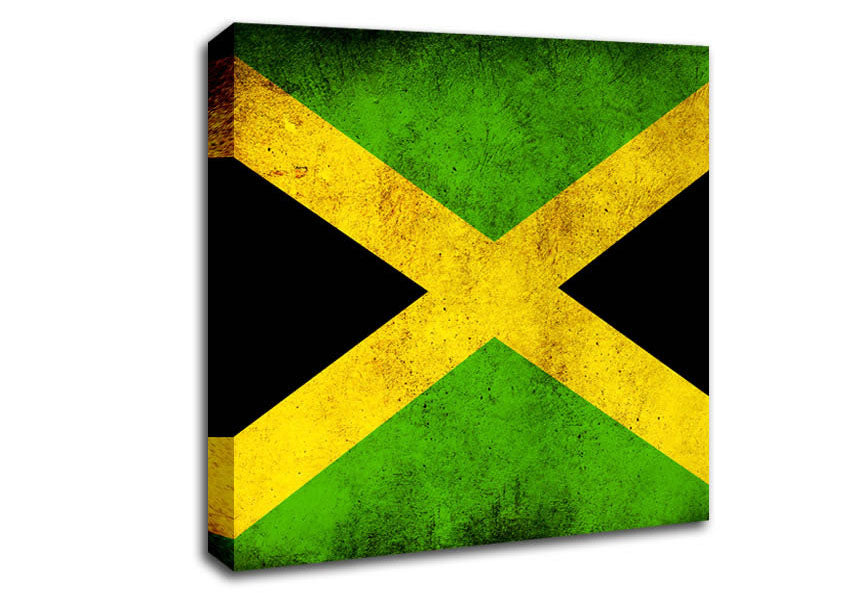 Jamaican Grunge Flag Square Canvas Print handmade in the UK. Stretched over a 2 inch thick wooden box frame, ready to hang on your wall.