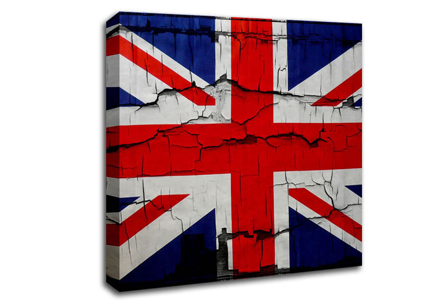 United Kingdom Flag Cracked Square Canvas Print handmade in the UK. Stretched over a 2 inch thick wooden box frame, ready to hang on your wall.
