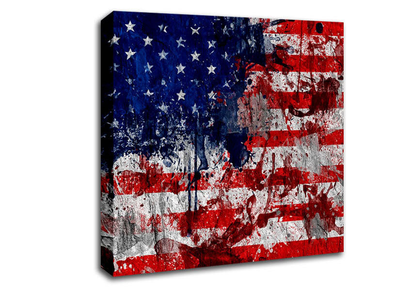 Usa American Flag Grunge Square Canvas Print handmade in the UK. Stretched over a 2 inch thick wooden box frame, ready to hang on your wall.