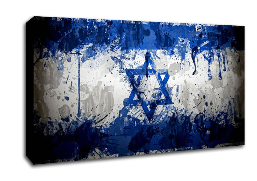 Israel Flag Wide Canvas Print handmade in the UK. Stretched over a 2 inch thick wooden box frame, ready to hang on your wall.