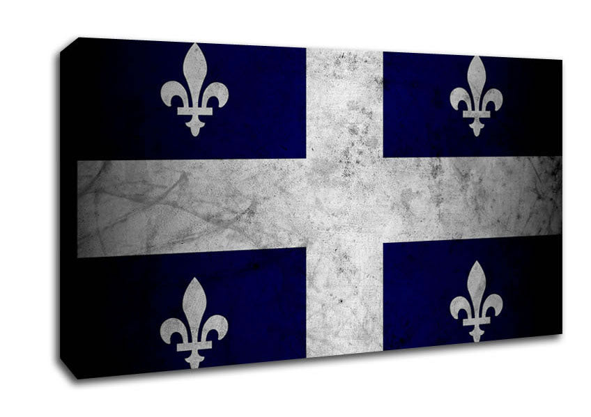 Quebec Grunge Flag Wide Canvas Print handmade in the UK. Stretched over a 2 inch thick wooden box frame, ready to hang on your wall.