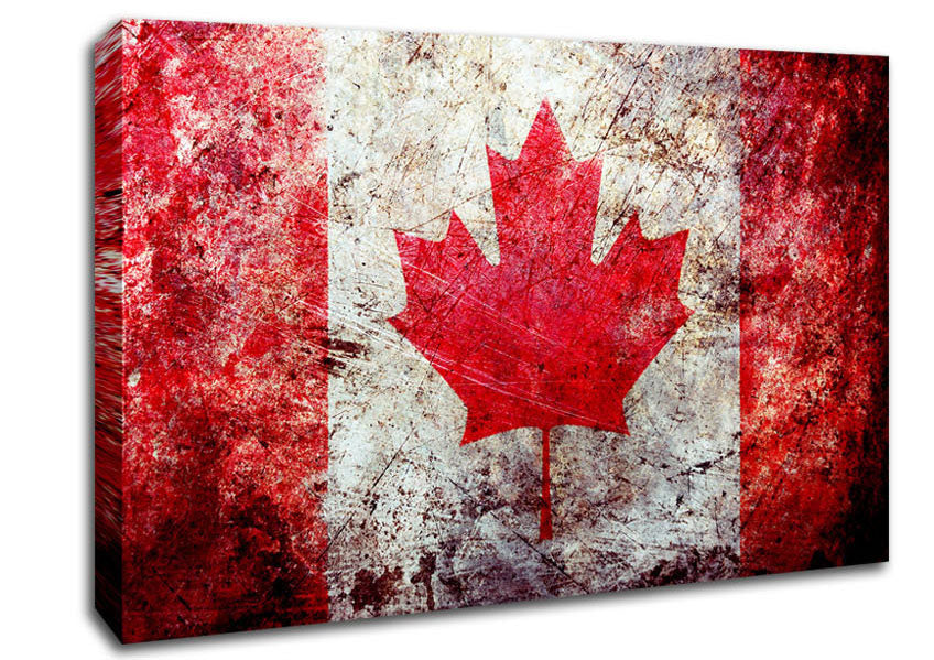 Canada Flag Grunge Canvas Print handmade in the UK. Stretched over a 2 inch thick wooden box frame, ready to hang on your wall.