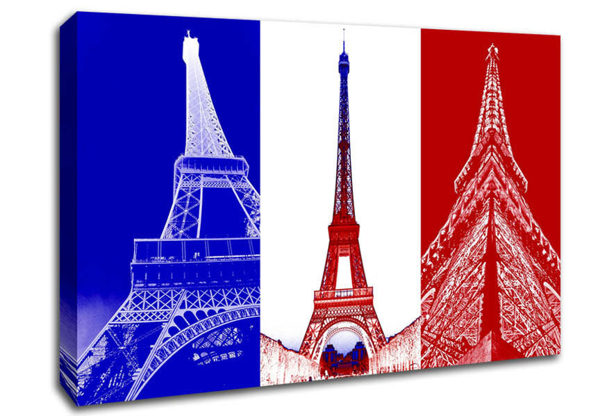 Eiffel Tower French Colours Canvas Print handmade in the UK. Stretched over a 2 inch thick wooden box frame, ready to hang on your wall.