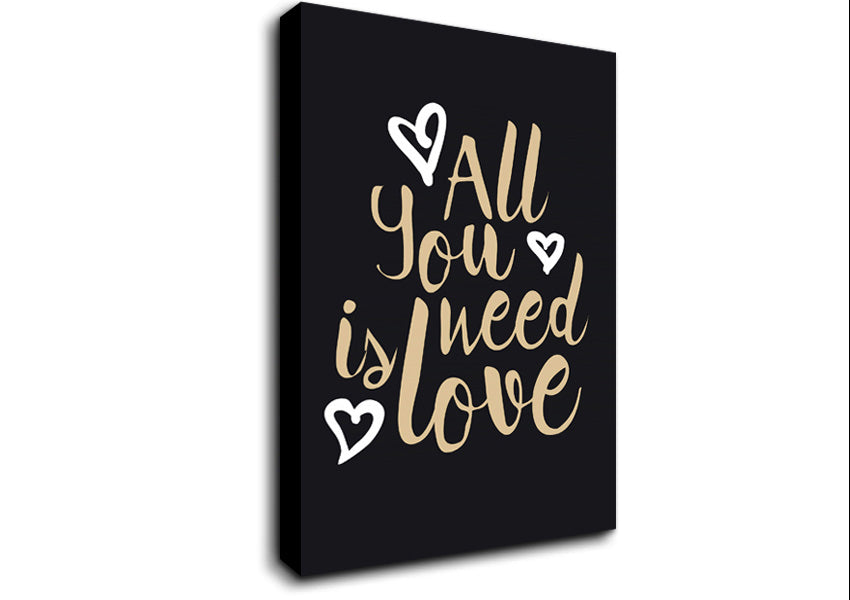 All You Need Is Love 2 Canvas Print handmade in the UK. Stretched over a 2 inch thick wooden box frame, ready to hang on your wall.