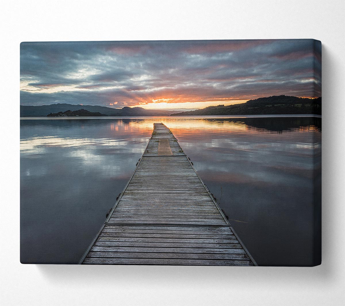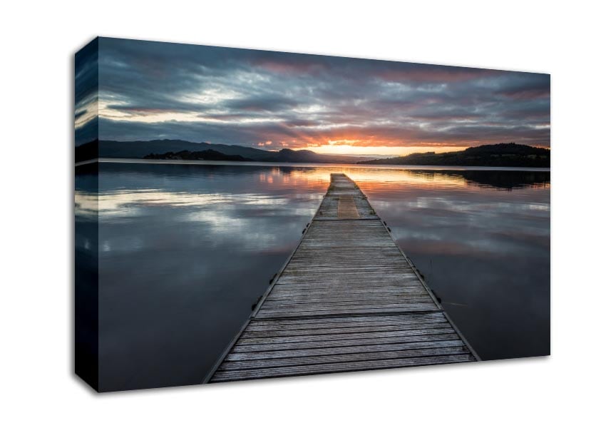 Bridge on the water sun Canvas Print handmade in the UK. Stretched over a 2 inch thick wooden box frame, ready to hang on your wall.