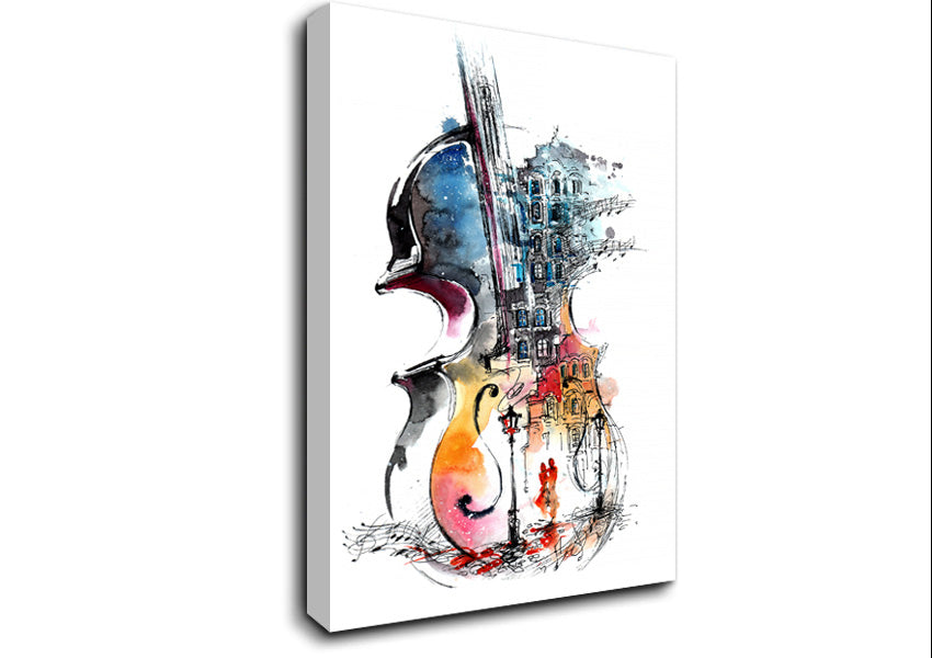 Double Bass In The Music Canvas Print handmade in the UK. Stretched over a 2 inch thick wooden box frame, ready to hang on your wall.