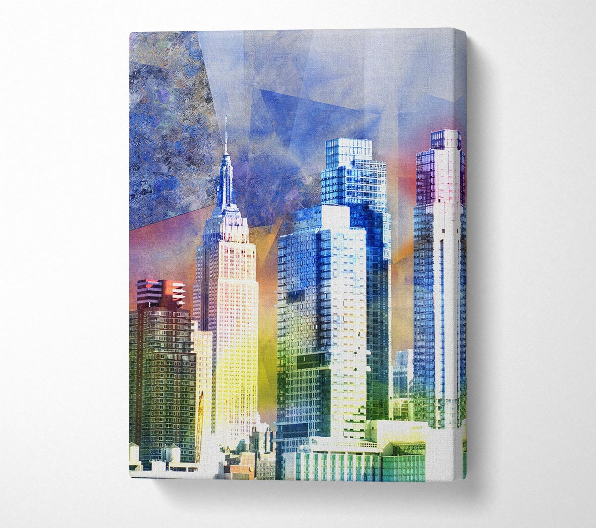 Rainbow City Buildings Canvas Print handmade in the UK. Stretched over a 2 inch thick wooden box frame, ready to hang on your wall.