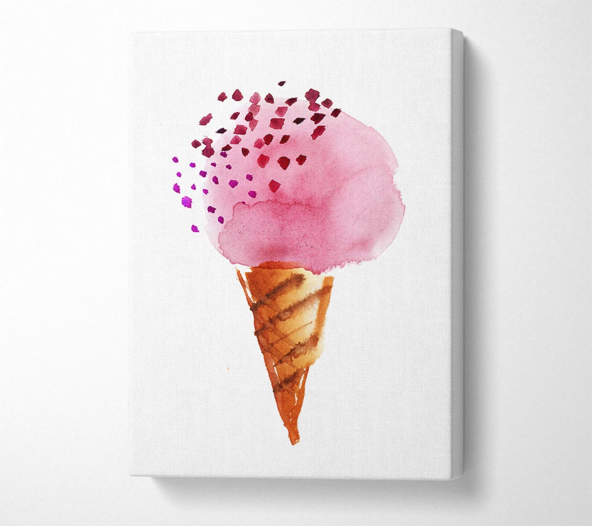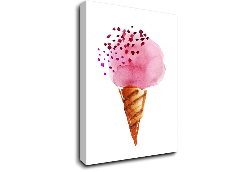 Strawberry Icecream Canvas Print handmade in the UK. Stretched over a 2 inch thick wooden box frame, ready to hang on your wall.