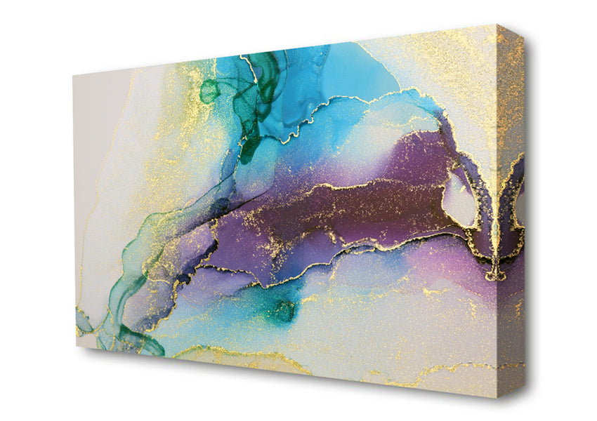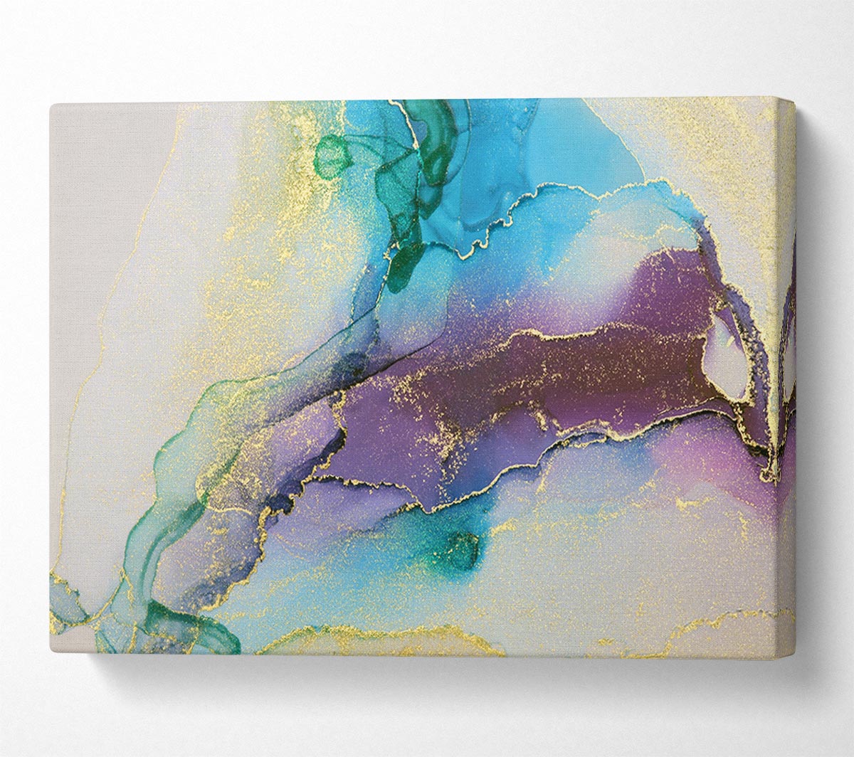 Stunning Gold Glitter Blues Canvas Print handmade in the UK. Stretched over a 2 inch thick wooden box frame, ready to hang on your wall.