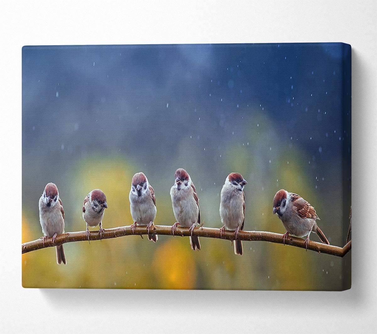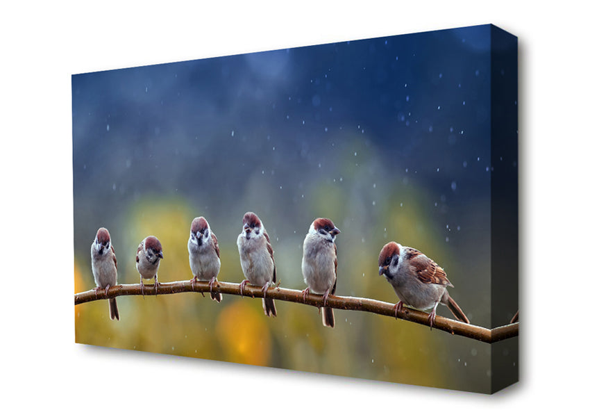 The Tits On A Branch Canvas Print handmade in the UK. Stretched over a 2 inch thick wooden box frame, ready to hang on your wall.