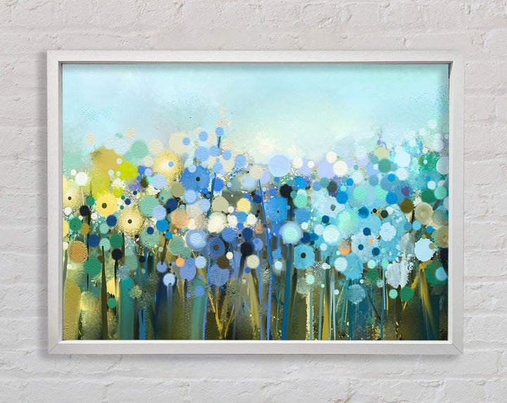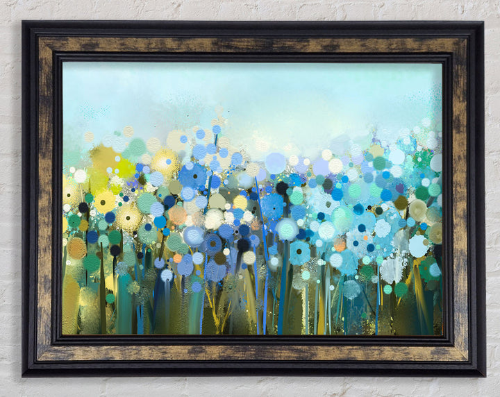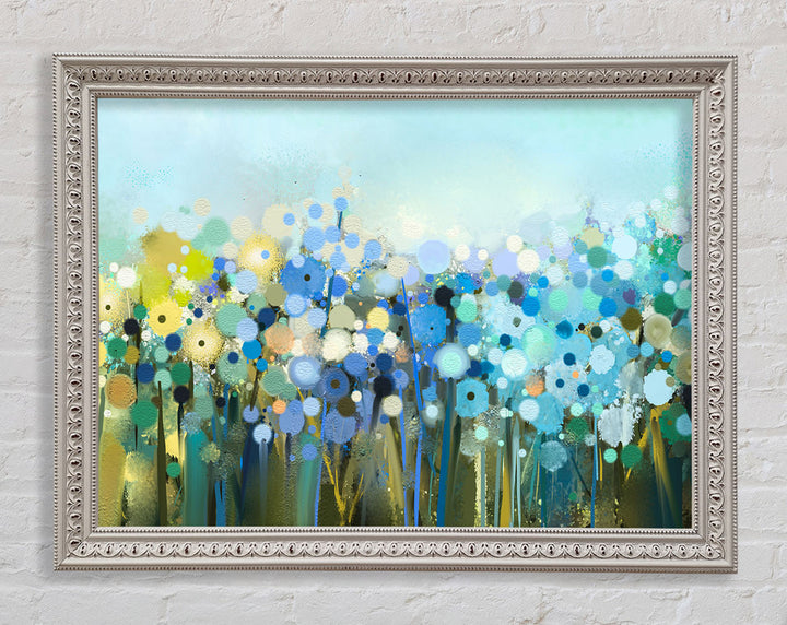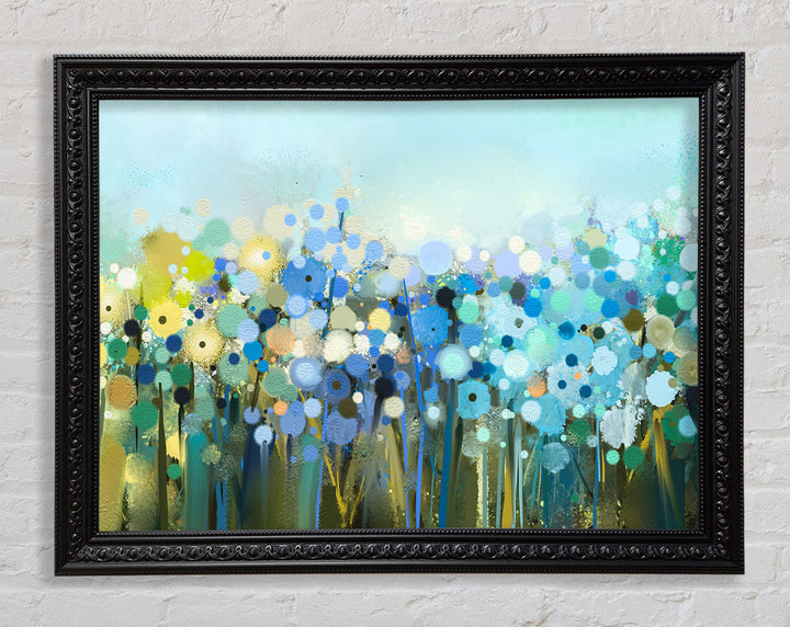 Introducing The Turquoise Wonder Flowers Framed Print, a stunning piece of framed art that brings vibrant beauty to any space. This exquisite print is available in six sizes, ranging from small to oversized, ensuring the perfect fit for any room. The artwork showcases a delightful display of turquoise flowers, adding a splash of color and elegance to your decor.