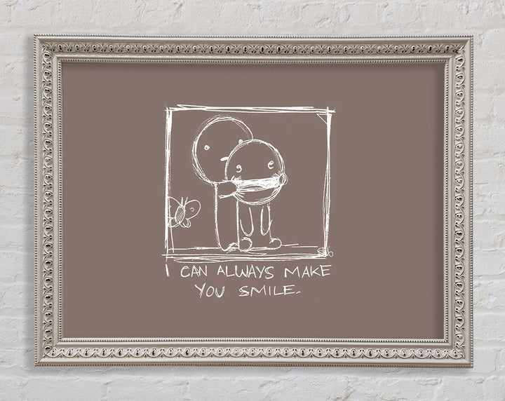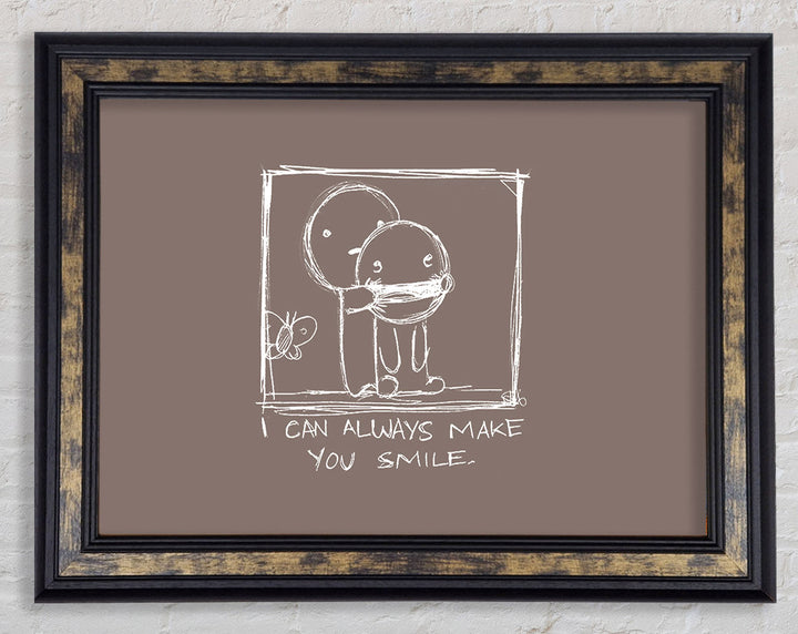 Introducing the I Can Always Make You Smile Beige Framed Print, a charming piece of framed art designed to brighten any space. This delightful print is available in 6 sizes, ranging from small to oversized, ensuring the perfect fit for any room. Handmade in the United Kingdom, each piece is crafted with care and precision. The print comes in a variety of colors to match your decor, and it is ready to hang right out of the box, making decorating a breeze. The warm beige tone adds a touch of elegance and coziness, perfect for living rooms, bedrooms, or offices. Elevate your home with this beautiful, handmade framed art that is sure to make you smile every time you see it.