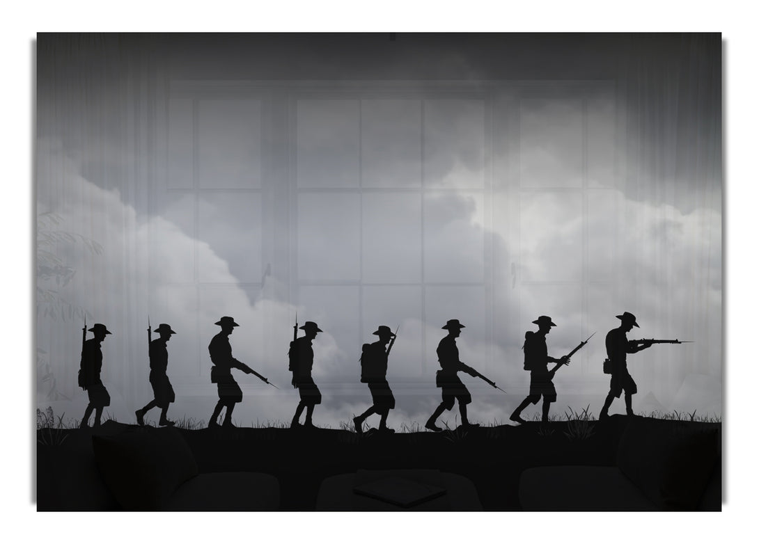 The Troops Silhouette acrylic print, UV printed onto 5mm thick acrylic glass. Comes with everything you need to hang on your wall.