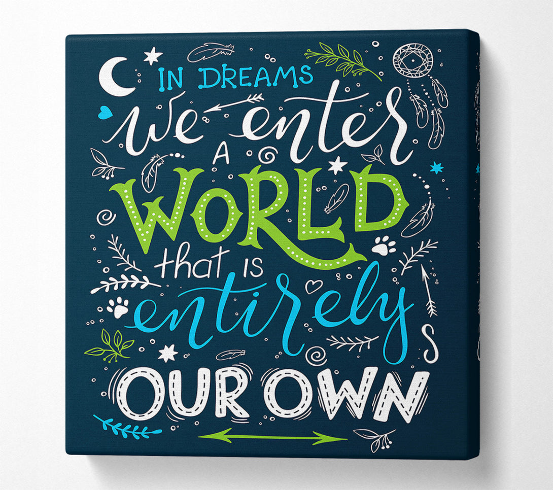 Transform any room with the captivating "In Dreams We Enter A World" Canvas Print. This stunning artwork adds a touch of magic and wonder to your space. Available in five sizes, from small to oversized, you can find the perfect fit for your wall. The high-quality canvas and vibrant colors ensure that the print remains vivid and eye-catching for years to come. Easy to hang and durable, this canvas print is a fantastic way to personalize your home or office. Whether decorating a living room, bedroom, or hallway, this piece will inspire and enchant all who see it. Make your wall a gateway to dreams!