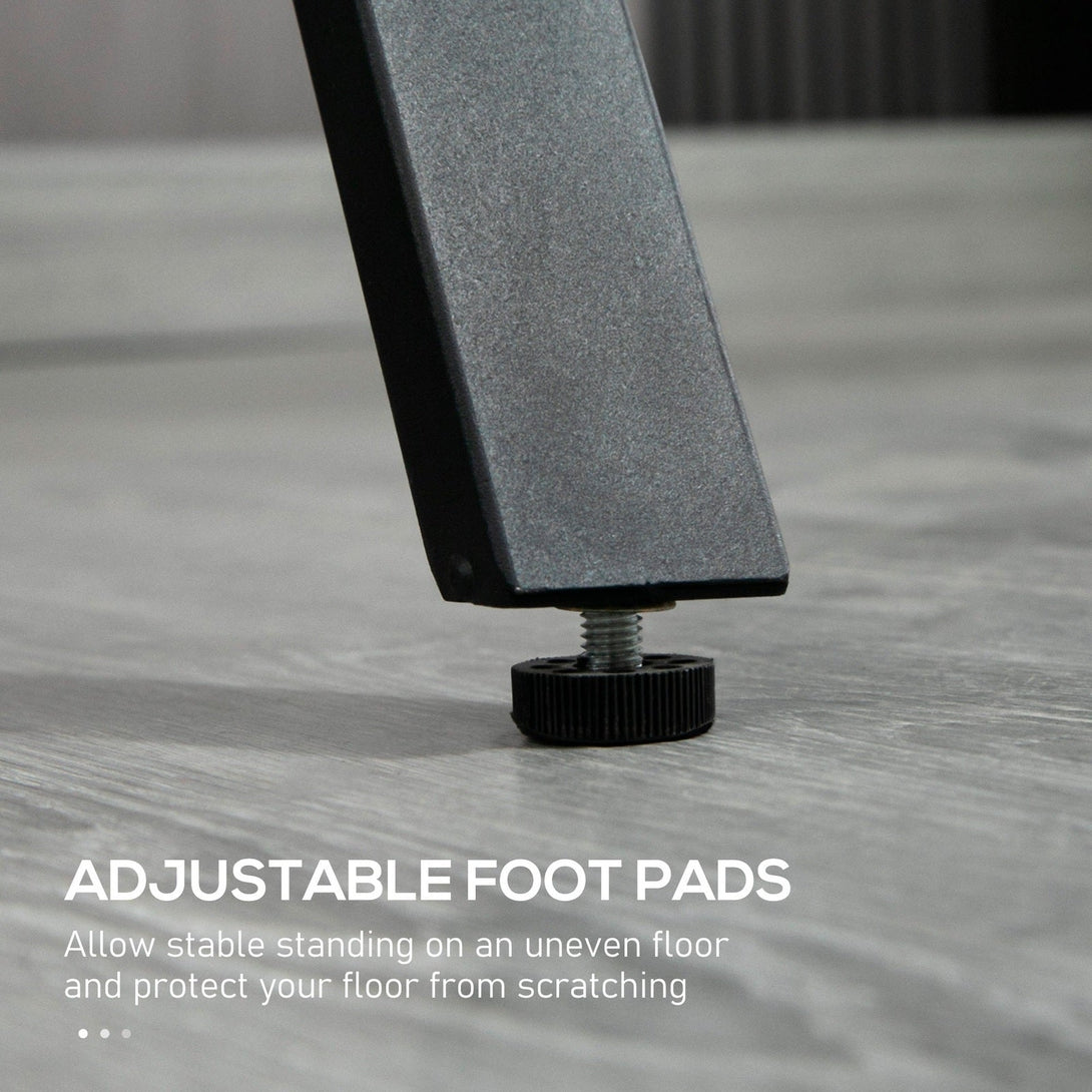 Somewhere to sit round, relax with company and enjoy the time. This HOMCOM bar table is one for the mornings and evenings. Seating four, so you can all sit together. A strong, powder coated steel frame means the table supports, with adjustable feet for balance. A durable particle board table top, which comes in a wood-effect design for classic beauty.