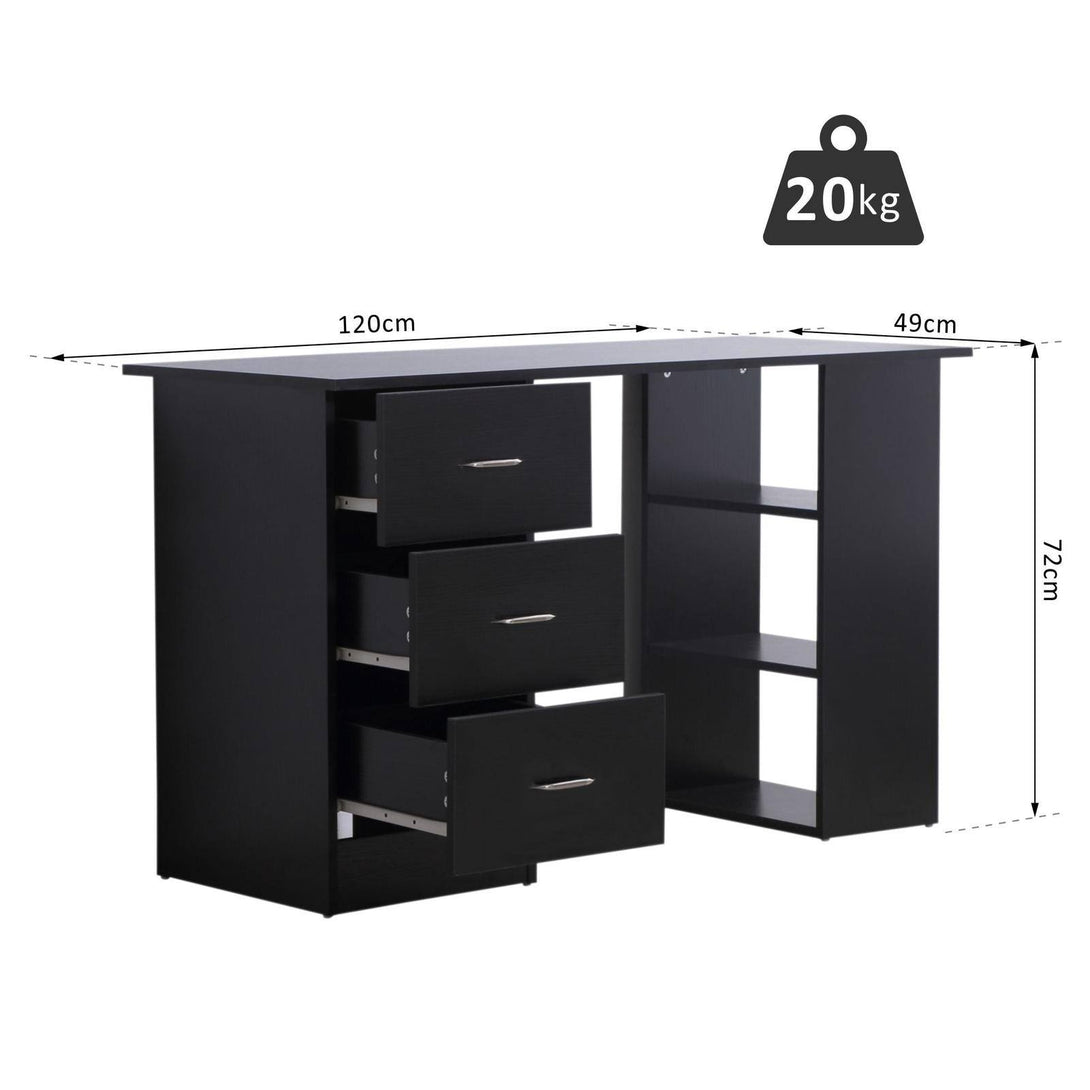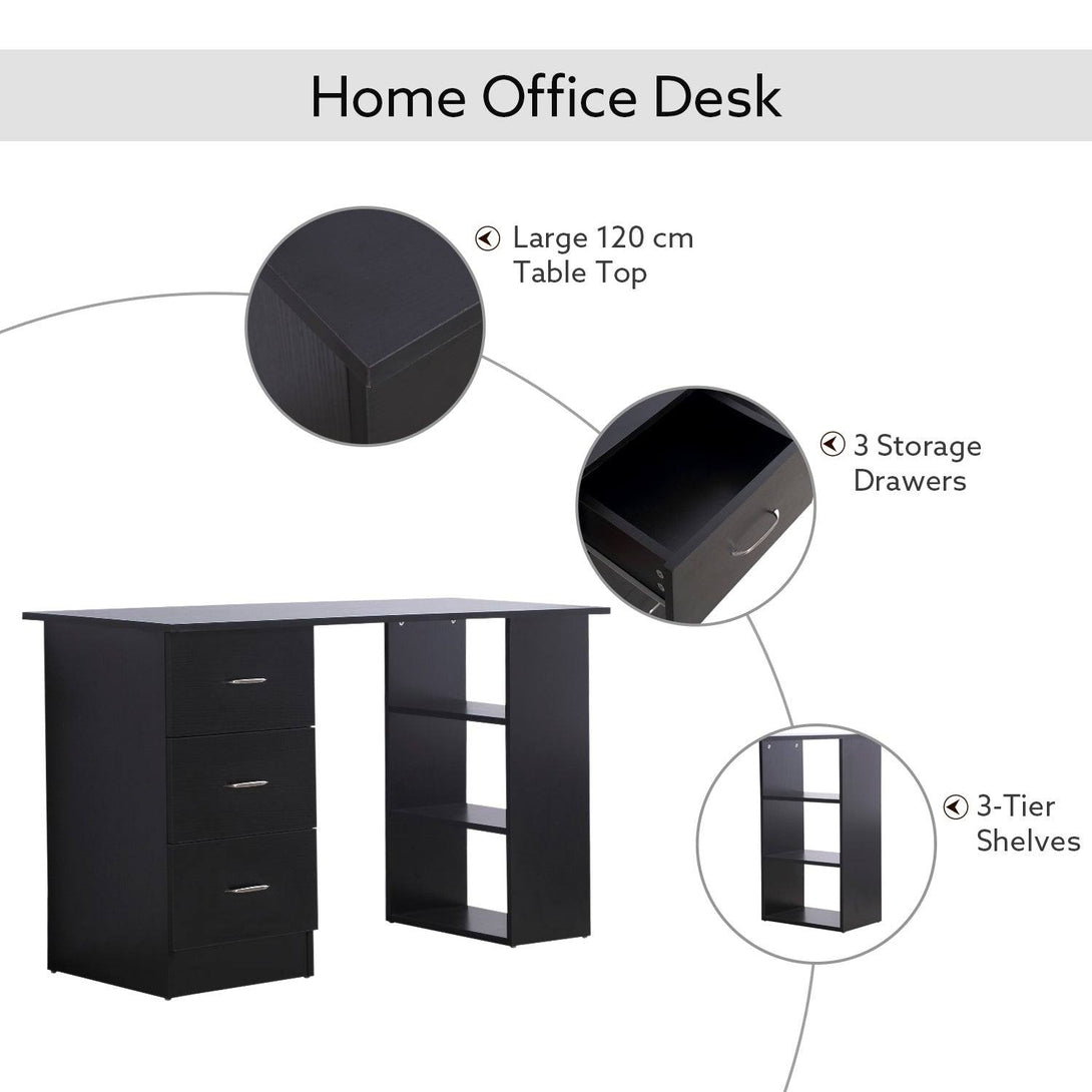 120cm Computer Desk Writing Table PC Workstation Study Laptop Stationery w/ 3 Shelf & Drawers Black