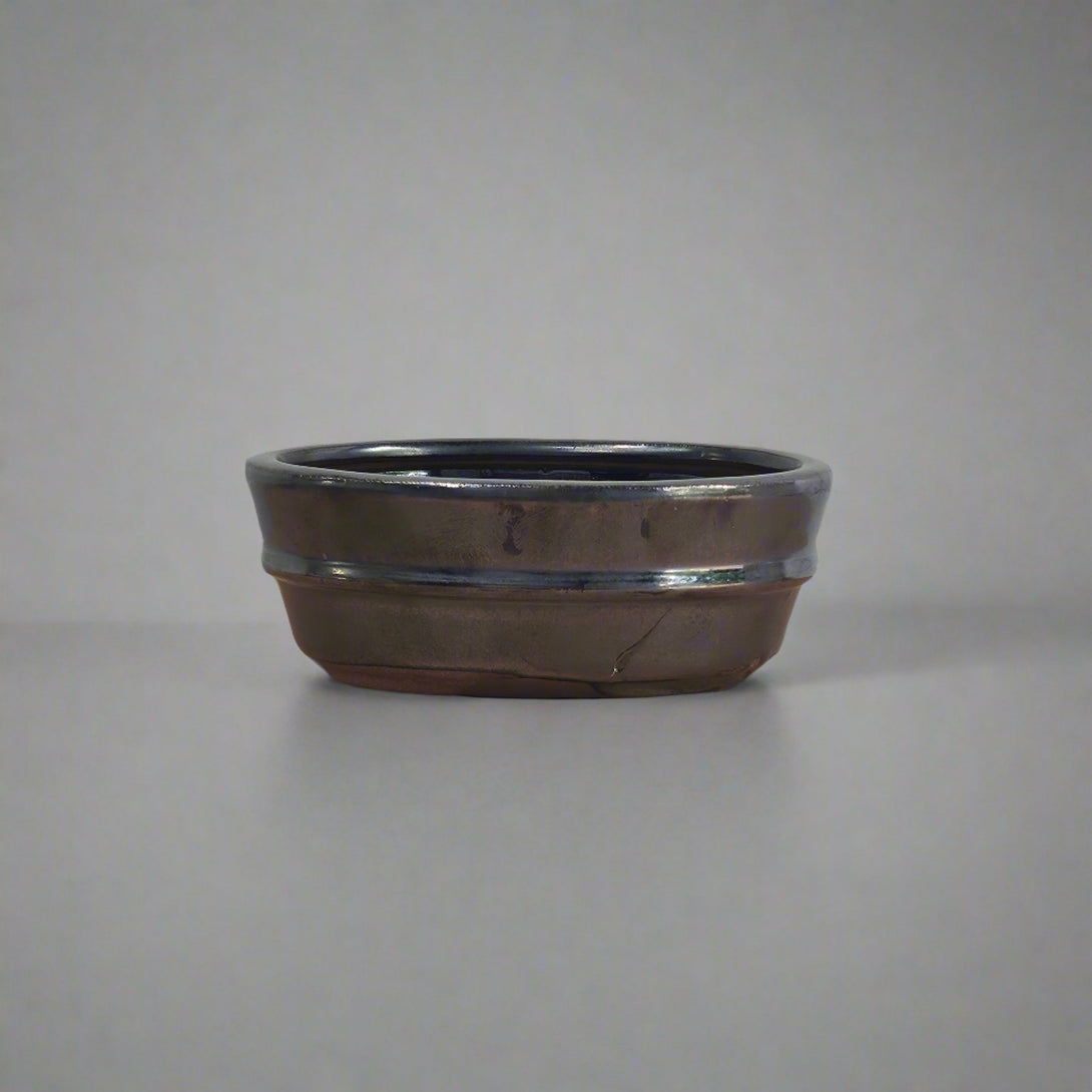 12cm Glazed Bonsai Pot | Oval | 12cm x 9cm x 5cm | Silver
