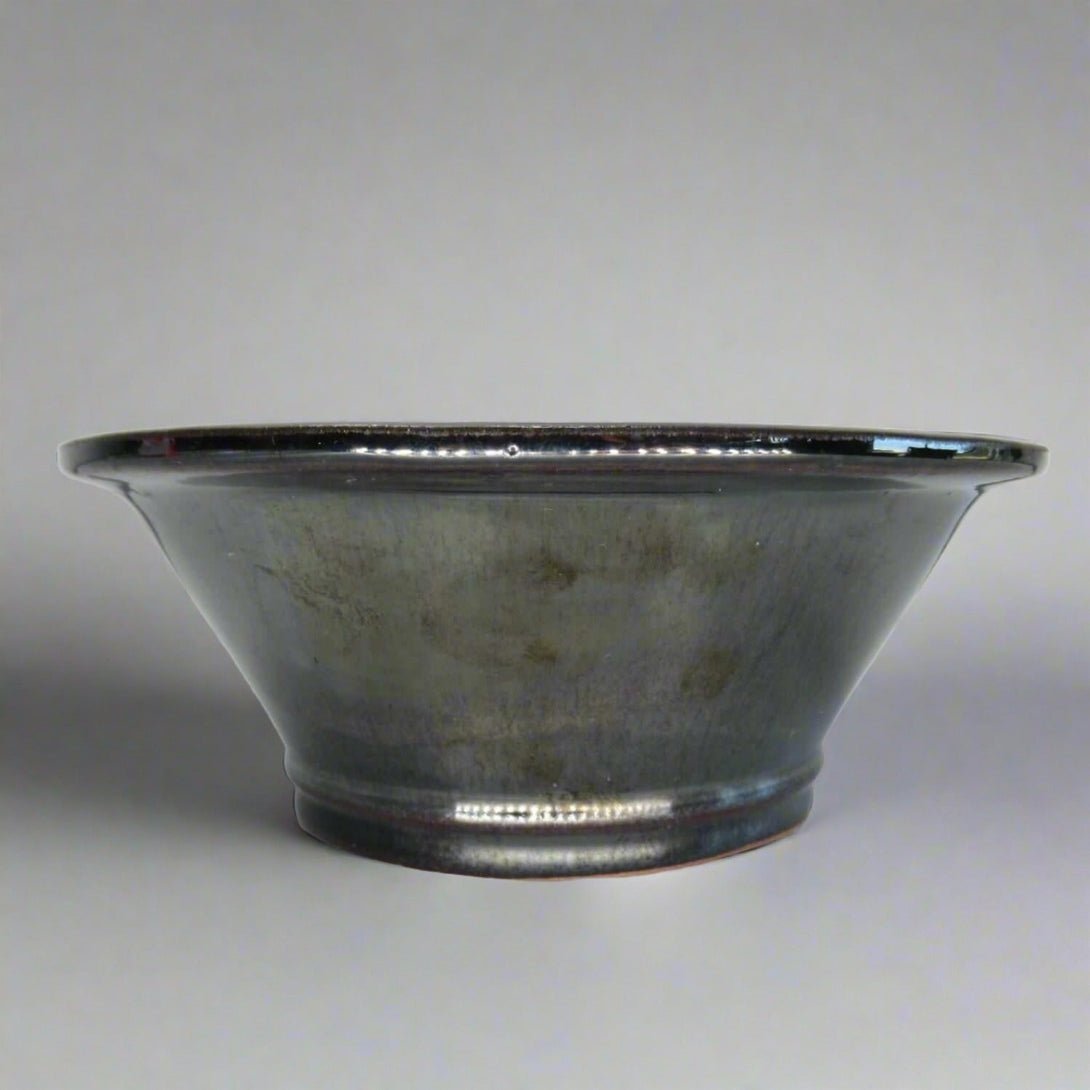 25cm Glazed Bonsai Pot | Round | 25cm x 25cm x 9cm | Black / Silver