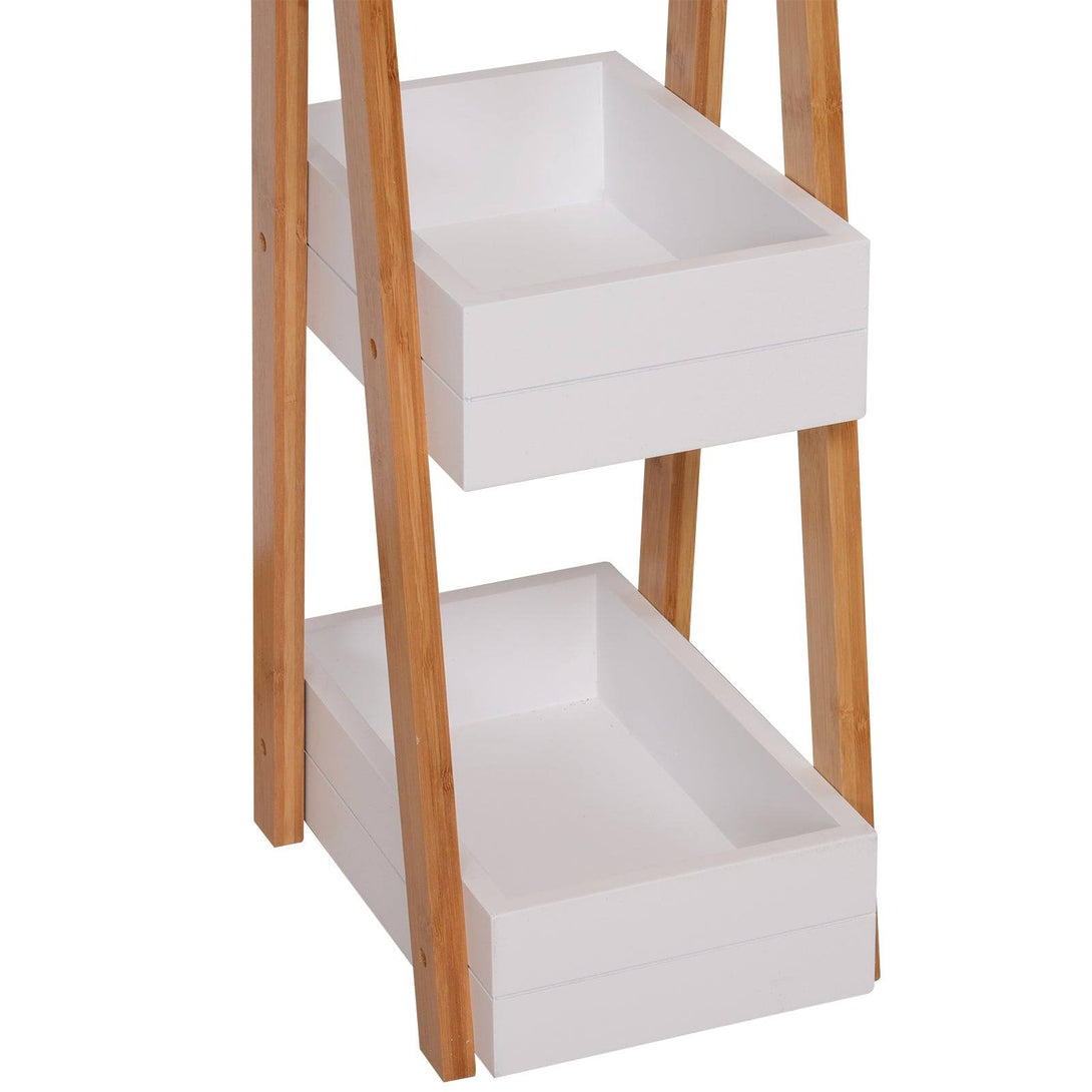 Get creative with your storage space for any décor with this deluxe product from HOMCOM. Manufactured from Durable natural woody material and MDF to provide long lasting product life. Increased functionality with 3-tier storage makes it ideal for any décor, Bathroom, Livingroom or Kitchen. The product offers A Shape Design and Natural, Smooth finish with rounded corners making it kids friendly.