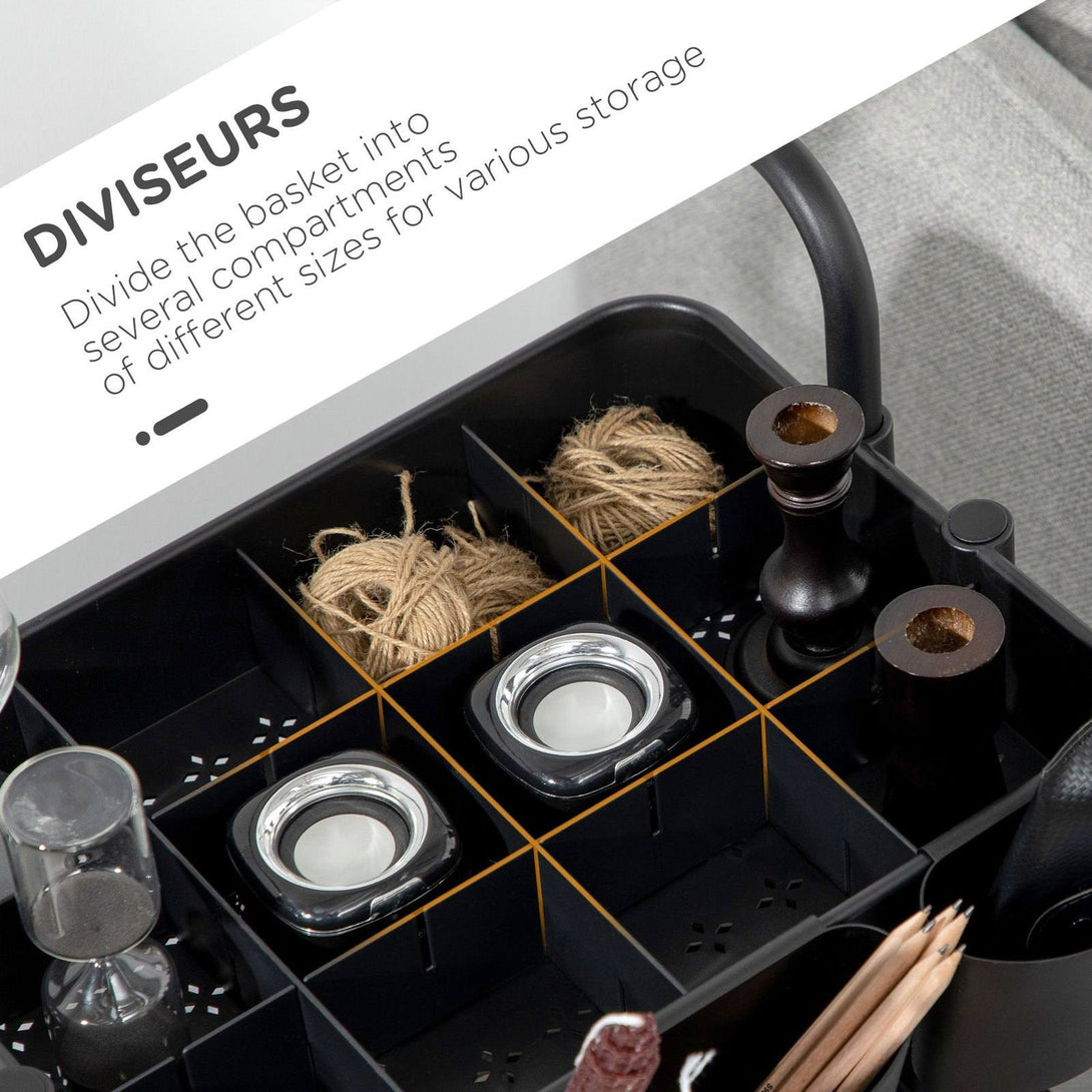 This HOMCOM rolling cart offers on-the-go storage, for whatever you want. Three-tier design, with three hanging boxes and four hooks give you plenty of holding room. A steel frame for a reliably strong structure, fitted with four wheels and a handle to move around easily; two wheels can be locked in place. Top tray is sectioned into 12 parts for better organisation. A kitchen storage trolley, drinks trolley - or how about keeping all beauty essentials together? The choice is yours.