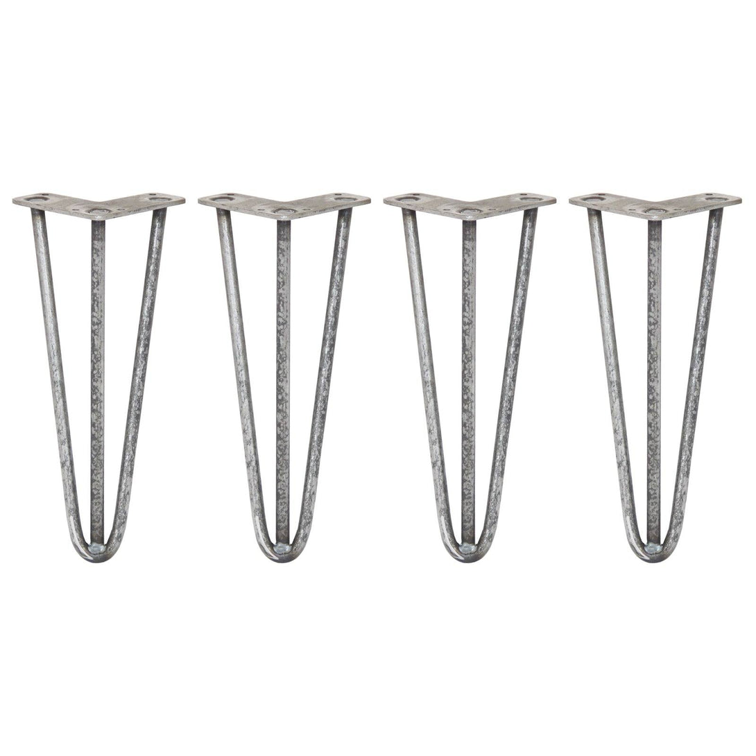 4 x 12" Hairpin Legs - 3 Prong - 12mm - Raw Steel
