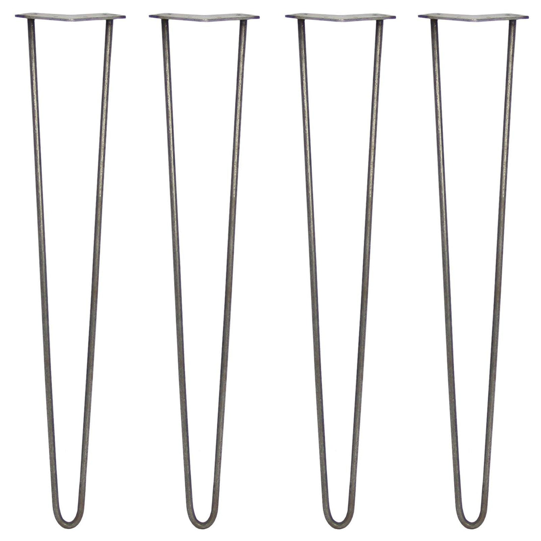 4 x 28" Hairpin Legs - 2 Prong - 10mm - Raw Steel