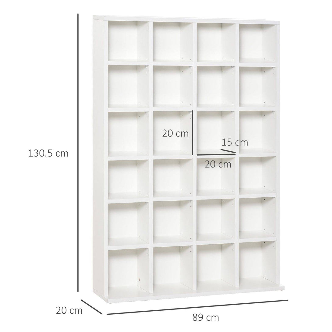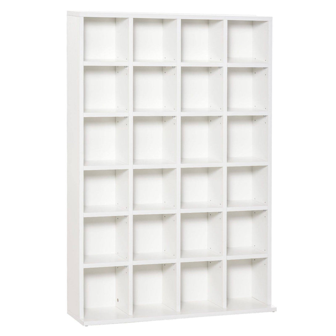 480 CD / 312 DVD Storage Shelf Rack Media Storage Unit Shelves Racks Wooden Bookcase Display Unit with 4 Adjustable Shelves White