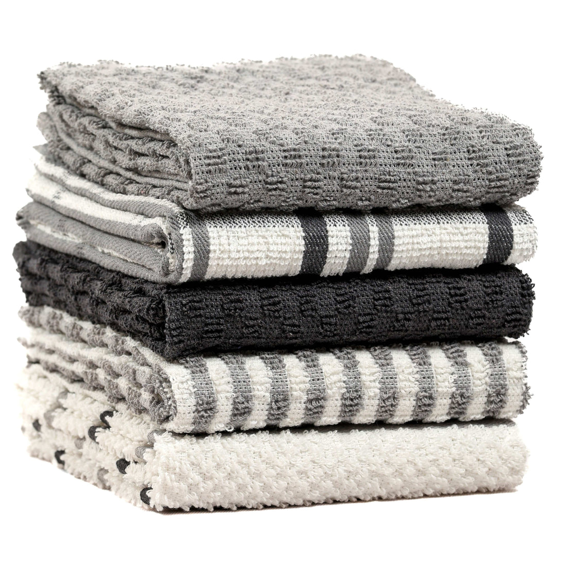 Upgrade your kitchen with the 5 Pack Terry Kitchen Tea Towels Cotton Super Absorbent Quick Drying by OLIVIA ROCCO. Perfectly designed for versatile use, these tea towels stand out for their super absorbency, quick-drying capabilities, and soft texture. Ideal for both home cooks and professional chefs, these towels are the reliable companions you need for all your kitchen tasks.