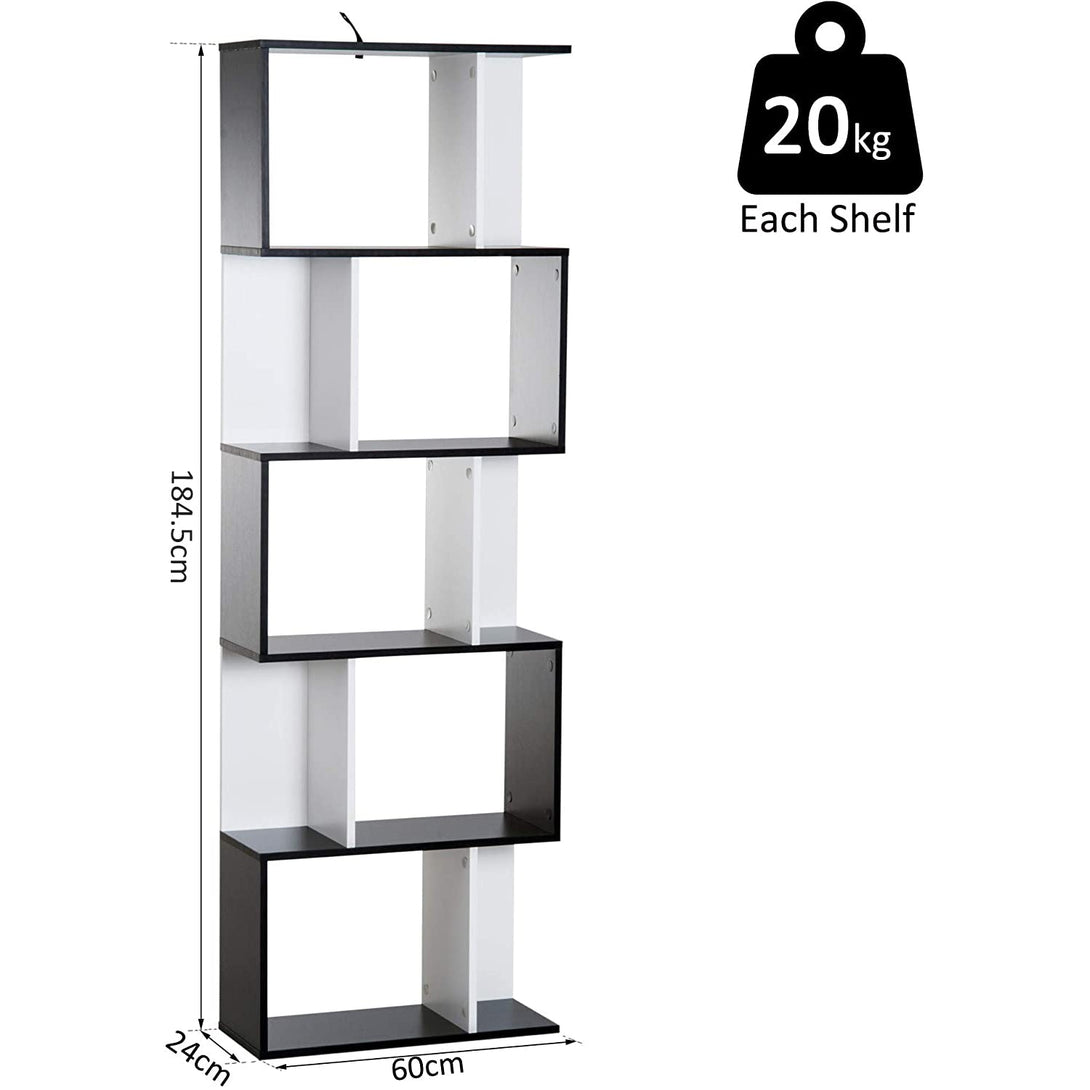5-tier Bookcase Storage Display Shelving S Shape design Unit Divider Black