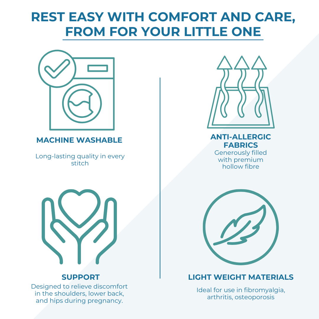 Ergonomic Design: Relieves common pregnancy discomforts and helps promote better sleep posture.
