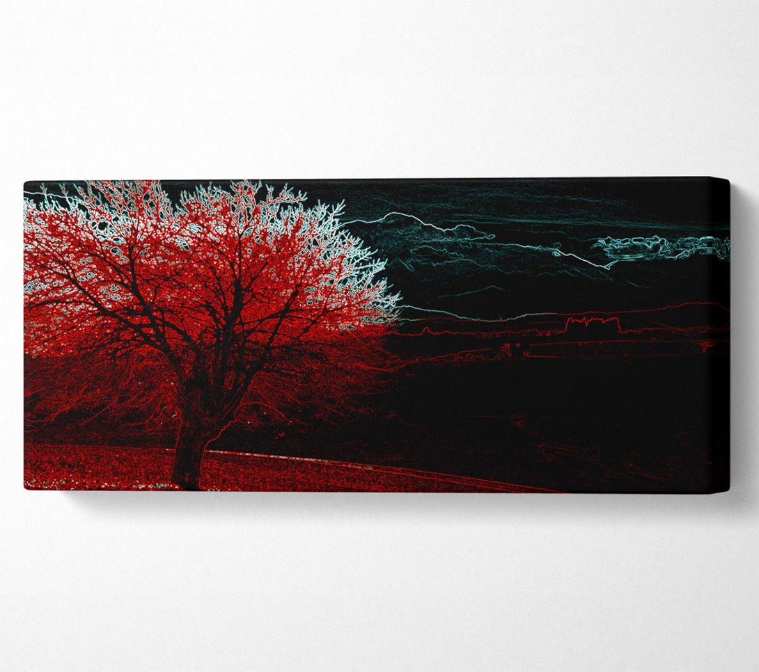 Leinwandbild „Abstrakte Neonlandschaft 04“, gedruckt auf beschichteter Polyester-Leinwand. Auf einem 44 mm großen Kastenrahmen montiert, fertig zum Aufhängen.