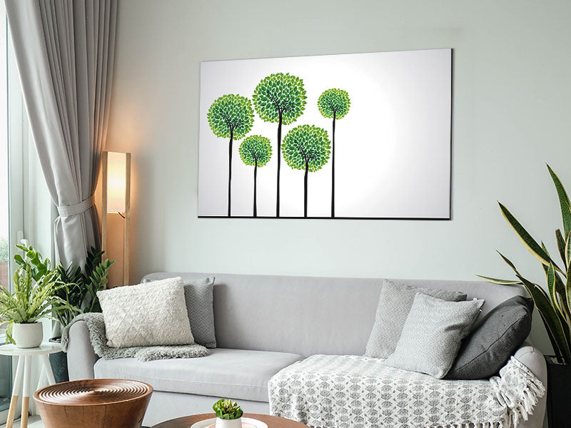 Abstrakte Bäume, gedruckt auf gebürstetem Aluminium-Dibond. Eine moderne Art, Kunst zu präsentieren und leicht zu pflegen.