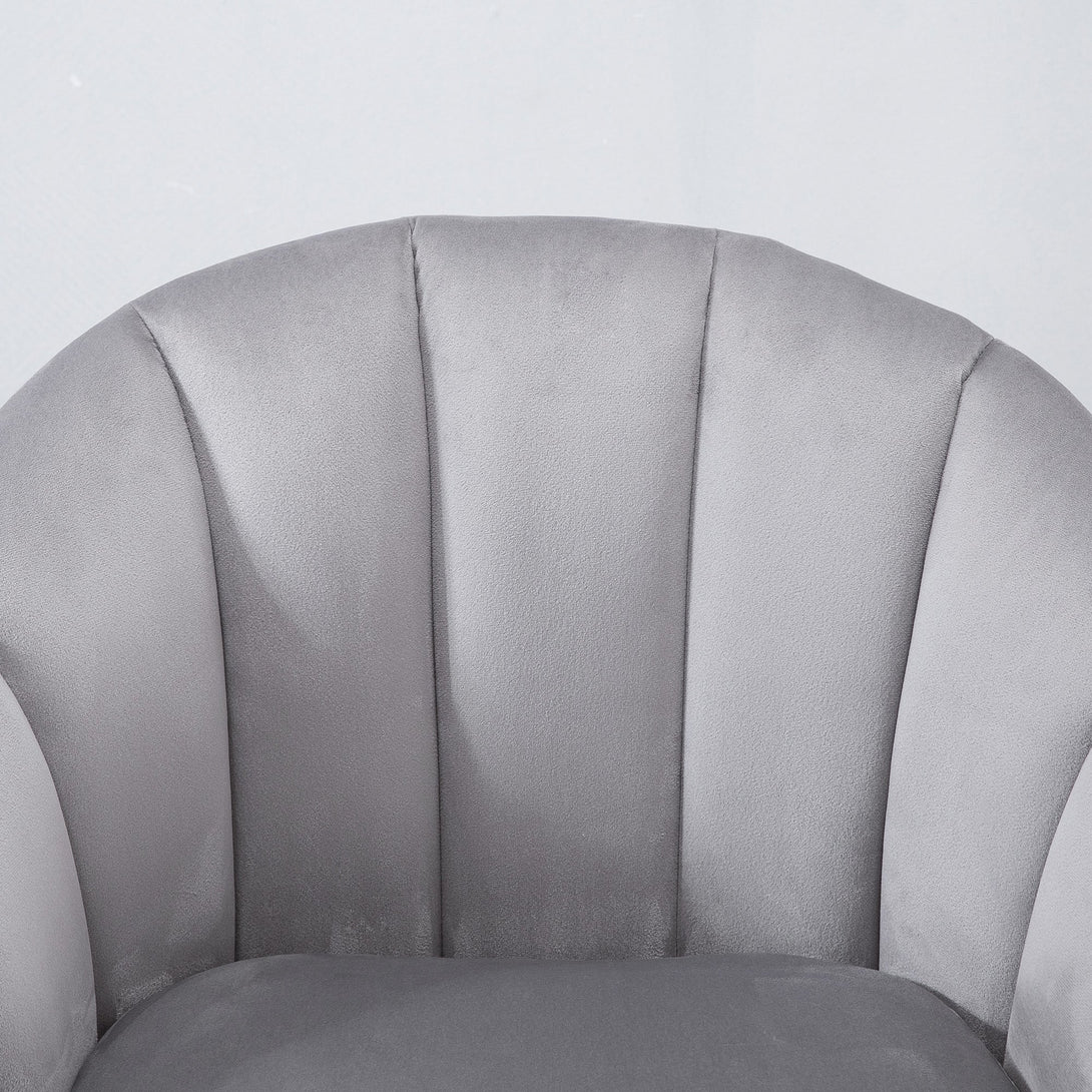 Accent Chair Velvet Fabric Single Sofa Armchair Home Living Room Solid Wood Leg Upholstered Side Armchair Grey