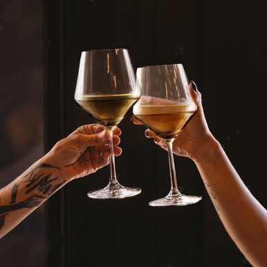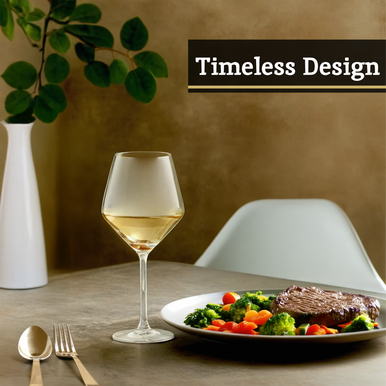This collection of wine glasses is created with lead free crystal glass and shaped into contemporary angled goblet with tall stems.